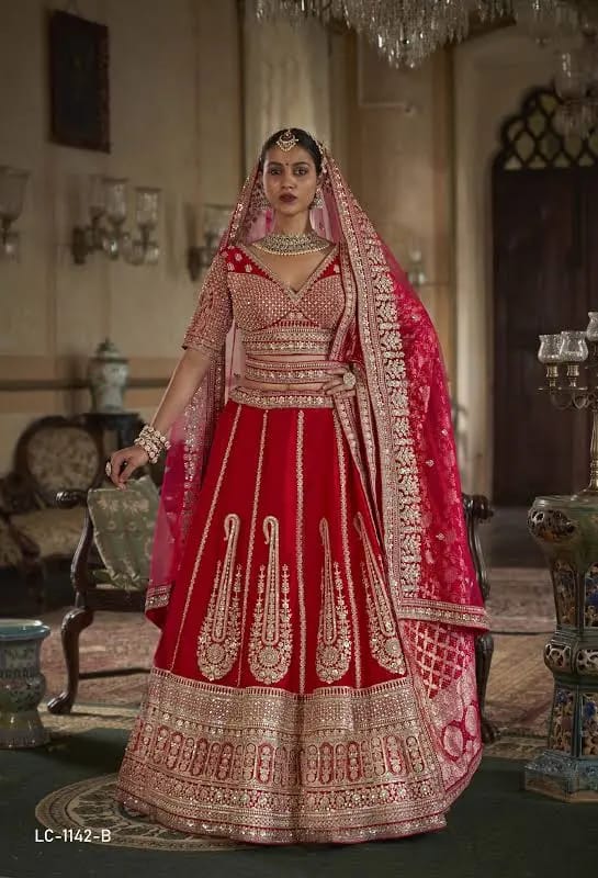 • Style: Bridal lehenga set (lehenga + blouse + double dupatta)